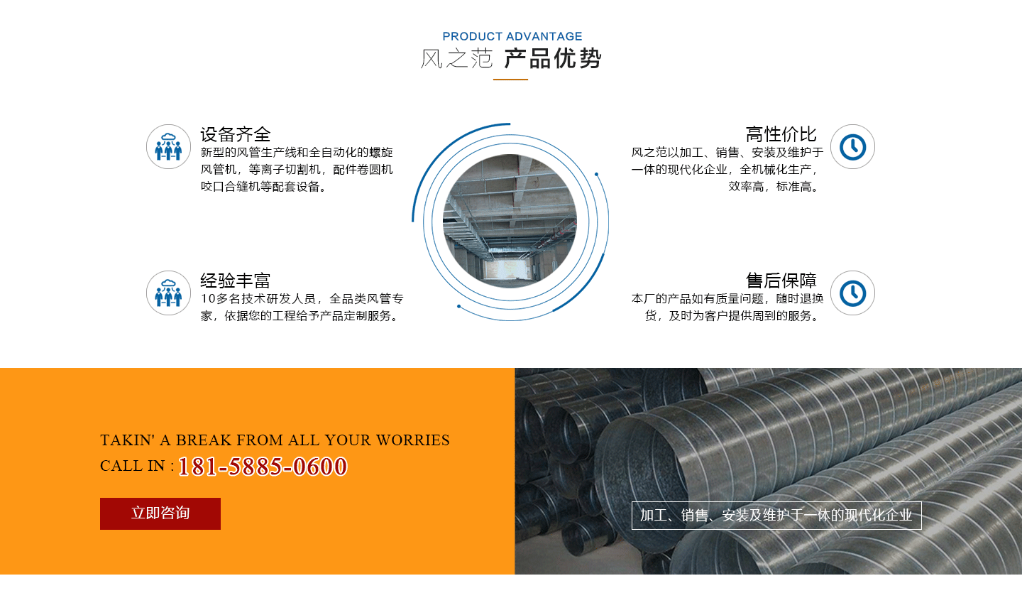 安徽風之范通風設備有限公司,是北京恒通偉業(yè)通風設備有限公司再創(chuàng)的新臺階,多年來,公司員工憑著“誠信敬業(yè)、團結拼搏、勇于開拓、務實進取”的企業(yè)精神,先后承接了多項重點工程項目,使公司健康穩(wěn)步發(fā)展。現(xiàn)由于公司的壯大,業(yè)務的拓展,又于2016年底,成功坐落于安徽省合肥市包河區(qū)。本公司生產設備精良,技術力量雄厚,質保體系完善!讓用戶體驗到,貼心的服務,無憂的售后!風之范是以加工、銷售、安裝及維護于一體的現(xiàn)代化企業(yè),同時以“創(chuàng)未來之風、營誠信之范”為核心理念,面向全國各省市,大量生產鍍鋅板、不銹鋼、玻璃鋼、酚醛復合等通風管道、螺旋風管、廚房排煙罩、油煙凈化器、各種風機風柜、風口風閥、靜壓箱等配件設施。廣泛承接商場、工廠、酒店、寫字樓、地下室等,消防排煙工程、除塵凈化工程、室內通風工程、暖通空調工程、廚房排煙凈化工程。我們力求上進,追求,歡迎各界人士技術指導,經濟合作,共創(chuàng)美好明天!